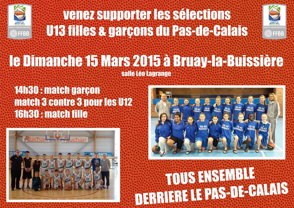 A l'aller, le 1er février 2015, les U13 du Pas de Calais se sont inclinés, 55-52 pour les filles et 53-36 pour les garçons.