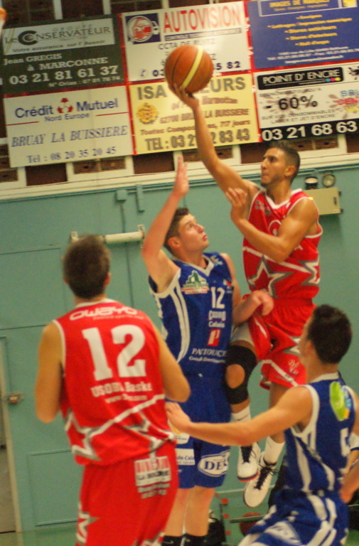 La jeune formation calaisienne a tenu le choc en première mi-temps. D'entame, l'USO Bruay infligeait un 6-0, mais Calais n'était pas venu en touriste et a recollé (8-7,6e). Jouant sans complexe, l'équipe maritime a tenu bon, malgré un excellent LEROY (16 pts). À la fin du premier quart, Calais était même devant. (17-18).